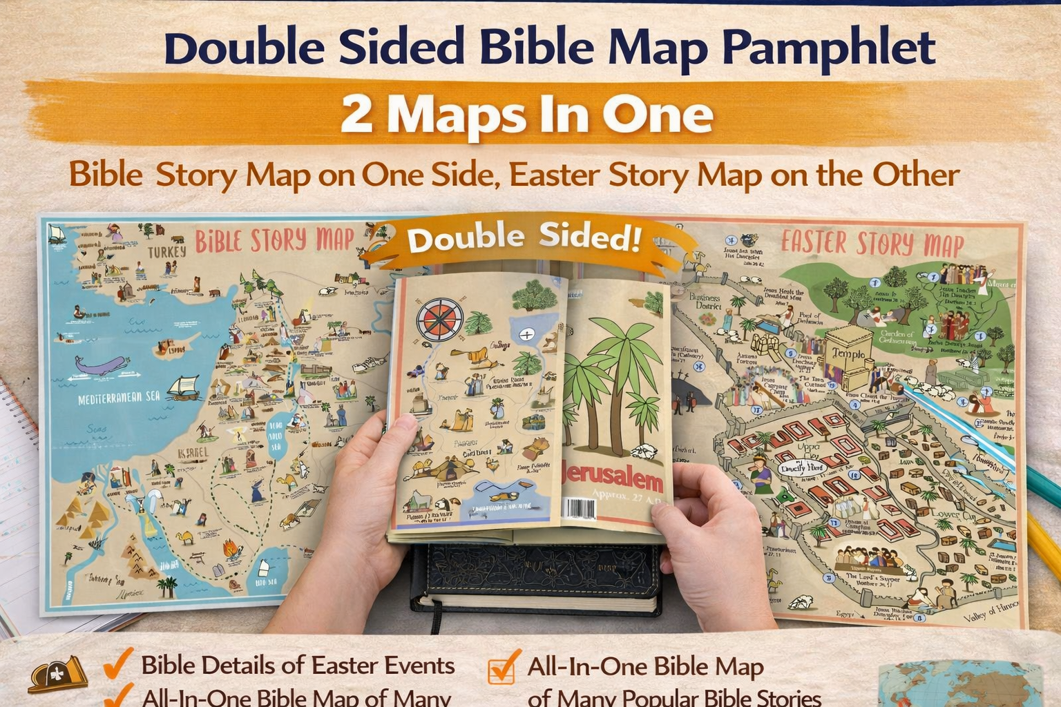 With our Bible Story Map on one side and the Easter Story Map on the other, you'll have a wonderful bible reference to fit inside your bible and take to church or bible study. A perfect gift idea for kids and adults.
